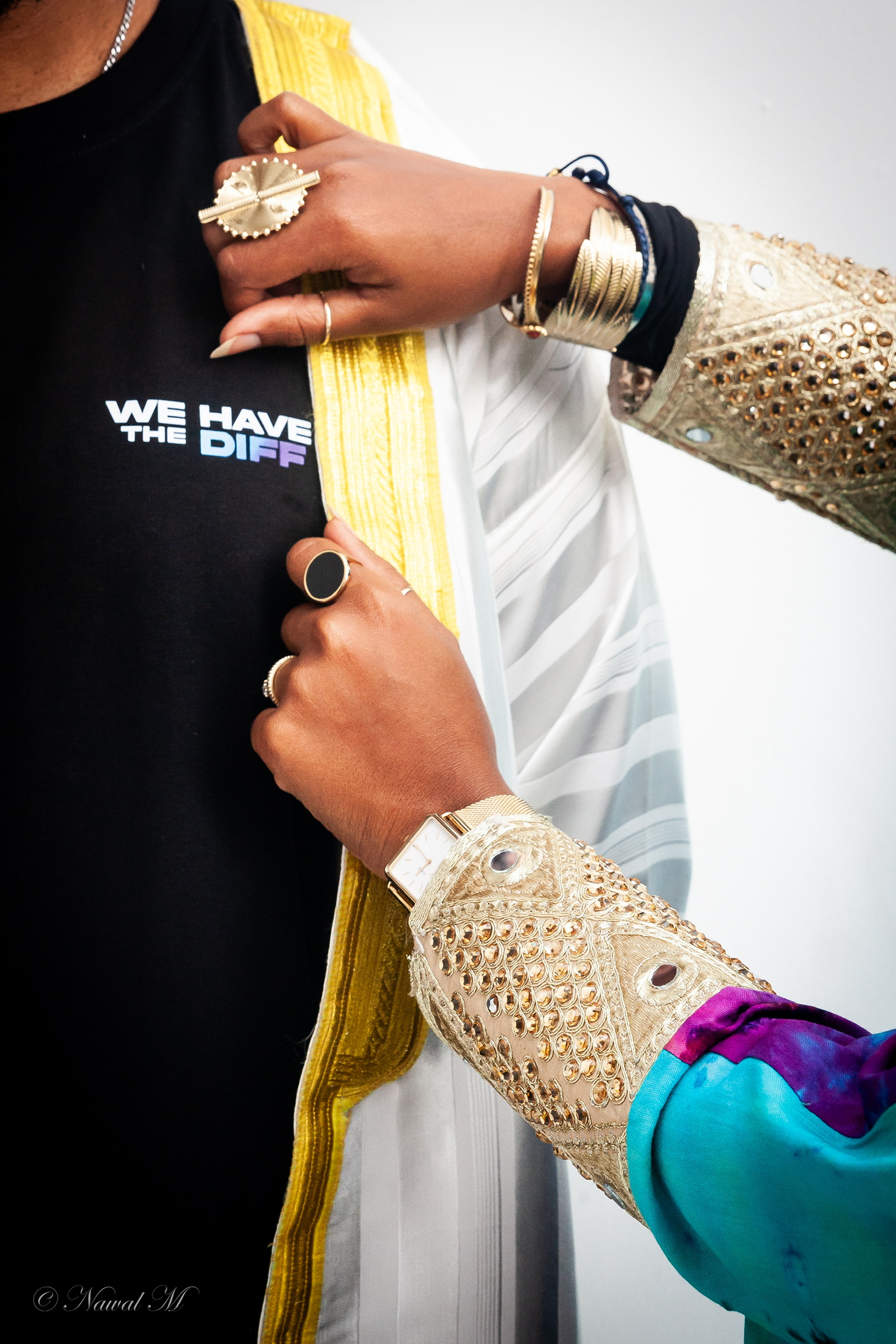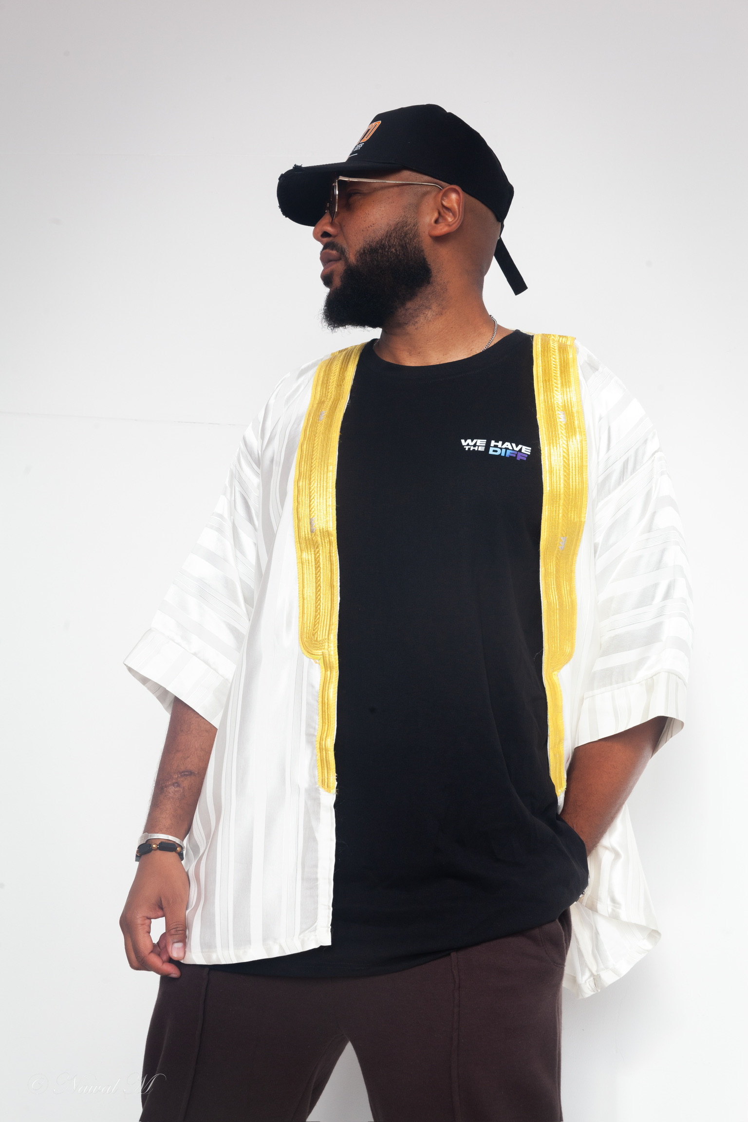 Ce kimono court séduit par sa simplicité sophistiquée. Confectionné dans un tissu fluide à rayures discrètes, il est sublimé par un galon doré éclatant qui encadre le buste avec finesse. Sa coupe droite et légère offre un confort absolu tout en affirmant une prestance naturelle, un essentiel chic et contemporain.